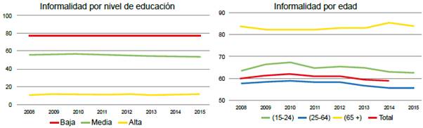 Colombia tiene una alta tasa de empleo informal, es decir, trabajadores que no están protegidos por las normativas, con relaciones laborales precarias y de baja remuneración. Así también, hay una correlación negativa entre nivel educativo e informalidad (García, 2010; Galvis, 2012; Guataquí, García y Rodríguez, 2010; Sánchez, 2015). Por otra parte, los trabajadores pobres tienen menos escolaridad y se ubican mayormente en la informalidad, aunque trabajan menos horas; no obstante, entre el 2002 y el 2012 se redujo la probabilidad de que el trabajador fuera pobre por el factor educación (Sánchez, 2015).
