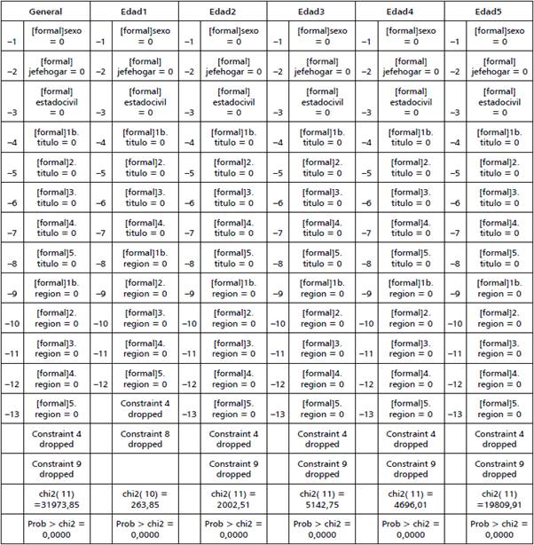Este modelo se ha usado para determinar la participación en el mercado de trabajo, segmentación laboral y determinar la probabilidad de estar empleado (Espino y Sauval, 2016; Paz, 2013; Sánchez, 2015; González y Báez, 2015; González, Mora y Cuadros, 2014; Uribe y Ortiz, 2006). De este modo, los individuos pueden estar en el empleo (modelo 1) y en la formalidad (modelo 2).
