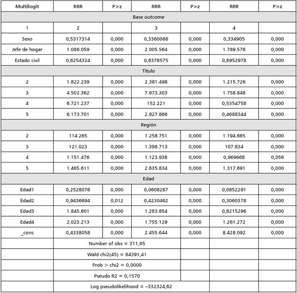 Anexo 5. Relaciones de riesgo relativo (RRR), modelo logit multinomial