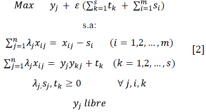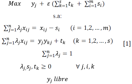 Para esta investigación se considera una combinación de modelos: a) el DEA-CCR, desarrollado por Charnes et al. (1978) y que utiliza rendimientos a escalas constantes; y b) el DEA-BCC, desarrollado por Banker et al. (1984), con el cual se consideran rendimientos a escalas variables; ambos con orientación a las salidas (outputs), es decir, que el modelo trabaja bajo el supuesto de que las DMU buscan lograr la máxima expansión de las salidas a un nivel de entradas dado. Al final, se calcula el modelo de eficiencia de escala, que es el cociente entre DEA-BCC y DEA-CCR. Se considerará una DMU como eficiente cuando el resultado obtenido sea igual a 100. A continuación se presentan los planteamientos matemáticos para calcular la eficiencia utilizando DEA para cada uno de los modelos.