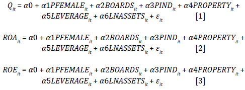 Se utilizan tres modelos para evaluar el efecto de las variables en el desempeño de la firma, empleando como variable dependiente el Q Tobin, ROA y ROE: