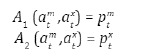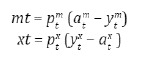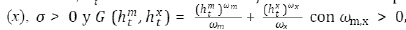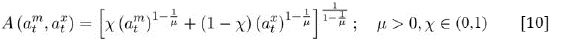 Donde am,xt son las cantidades utilizadas de bien importable y exportable y A(amt,axt) es un agregador de Armignton que toma la forma de una función CES como la siguiente: