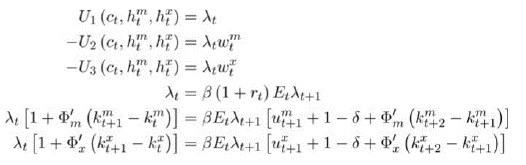 Las condiciones de primer orden y de vacío de mercado se encuentran en anexos. Para más detalles ver Uribe y Schmitt-Grohé (2017).