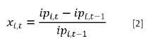 El segundo periodo tiene como base el mes de diciembre de 2010, donde no solo se amplía la cantidad de bienes y servicios considerados a 374 (véase INE, 2010), sino que también se incorporan a la muestra algunas áreas urbanas del interior del país, por lo cual este índice representa la evolución del precio de una canasta de consumo típico de una familia de Montevideo o del interior urbano. Estos productos se agrupan en 88 clases de bienes y servicios con características similares, las cuales a su vez se agrupan en 12 divisiones. Así como en la primera parte se consideró el nivel de los subrubros, para este periodo se tomaron los datos correspondientes a las clases (véase Anexo A.2), disponiéndose de 88 series temporales. El formato con el cual se trabajan las series es el de las variaciones mensuales porcentuales para cada una de las clases o subrubros. Por lo tanto, a cada serie ipi,t en el momento t se la transforma (ecuación [2]) para obtener una nueva serie temporal Xit,... Obsérvese que al realizar dicho procedimiento se "pierde" una observación para cada uno de los dos subperiodos.