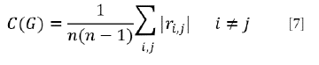 Permite analizar el grado de correlación de la estructura de precios de la economía para los distintos periodos de análisis. Para su cálculo, es necesario trabajar con todas las correlaciones, es decir, se trabajan con los datos sin filtrar. Se define la correlación media de la red G, denotado C(G), que se calcula con la siguiente fórmula: