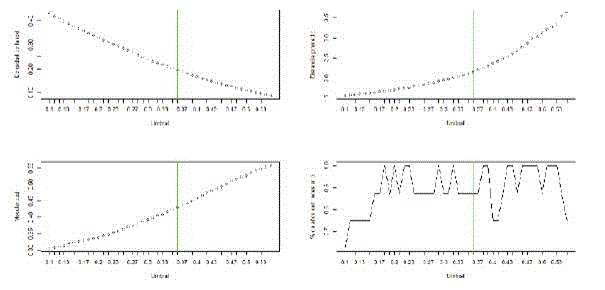 Para la estimación del umbral u se procedió a simular las distintas redes para los 8 años de estudio en el rango de valores [0.1; 0.55] de este parámetro. Para valores mayores a 0,55, la red quedaba con muchos nodos aislados. Se calculó un conjunto de indicadores y se procedió a seleccionar el valor del umbral buscando que este cumpliera con dos propiedades: