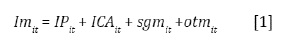 Por tanto, los componentes del recaudo municipal a los que denominaremos (Im)corresponden al impuesto predial (Ip), impuesto de industria, comercio, avisos y tableros (ICA), sobretasa a la gasolina (sgm) y un grupo de tributos complementario de la canasta tributaria de estas entidades territoriales (otm). Portanto, Im se define como: