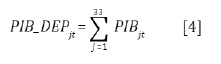 Donde:j = 1,2,3... 33, en su ámbito municipal representado por departamentos (incluido Bogotá D.C.) y t= 2005,2006,... 2018.