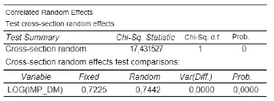 Para confirmar que la estimación de efectos fijos es la adecuada sobre la especificación de efectos aleatorios, se aplicó la prueba de Hausman (1978). Los resultados muestran que se puede rechazar la hipótesis nula de que las especificaciones son iguales, a favor de que la mejor especificación es con efectos fijos. Este resultado se presenta en la tabla 10. Cabe resaltar que los modelos presentan un grado de ajuste pertinente, los coeficientes son significativos, no se evidencia existencia de autocorrelación de los errores5 y los criterios de Akaike y de Schwarz reflejan en conjunto las especificaciones adecuadas para validar la relación entre el recaudo de impuestos territorial y el crecimiento económico regional.