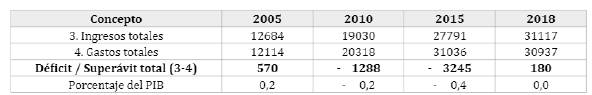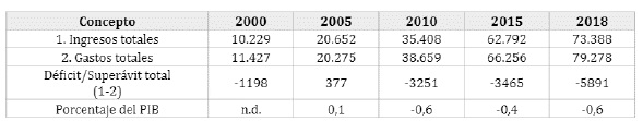 Al analizarlos ingresos y gastos totales, los resultados son contradictorios respecto al positivo balance primario de los gobiernos locales. Si bien el esfuerzo fiscal se vio reflejado en el fortalecimiento de las rentas propias y durante varios años del periodo de estudio el déficit fiscal total estuvo controlado, al incluir los recursos y gastos de capital, la situación se revierte en los municipios, generando sucesivos déficits, de los cuales los más representativos se encuentran entre el 0,4% y el 0,6% del PIB, siendo el más alto el del 2018, que alcanzó un valor de $5891 miles de millones de pesos (tabla 6).