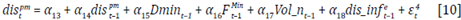 Donde dis_infe corresponde al desacuerdo de las expectativas de inflación a doce meses del mercado financiero, obtenida de la Encuesta Mensual de Expectativas de Analistas Económicos. Esta variable está construida también como la diferencia entre el máximo y el mínimo. Igual que las expectativas de la tasa de interés, la serie de expectativas de inflación como pronóstico de evento fijo fue transformada en horizonte fijo para corregir la estacionalidad.