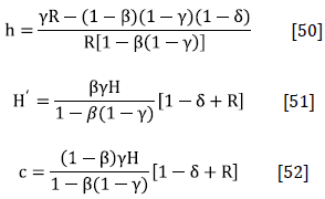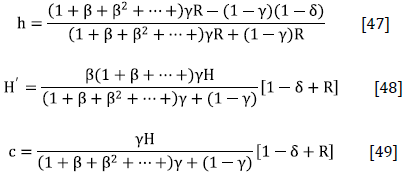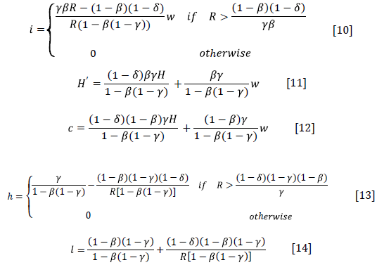 . While according to Equations [11] and [12], the minimum level of human capital for the next period (H] and consumption (c), when the wage is equal to zero, are