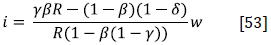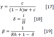 In order to calibrate the model's parameters, by letting them as a function of observable variables, the following procedures are used. If we solve for λ in Equations [54] and [55], equalize both, and consider w = RH, we have