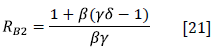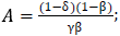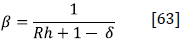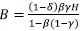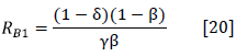 For calibrating β, using Equation [19], one is divided by Rh + 1 - δ. Therefore β = 1 / (0.8418*0.4613 + 1 - 0.0769) = 0.7626.
