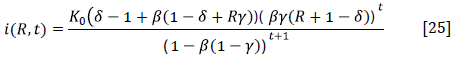 Lastly, by substituting Equations [5] and [23] in Equation [10] we get the temporal path of investment [i(R, t)]; which also only depends on parameters, the state variable R, and time