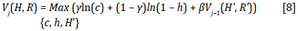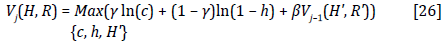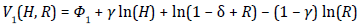 Finally, the value function for the last period [V1(H, R)] is obtained by substituting [32] and [33] in Equation [27] as well as reducing terms