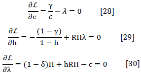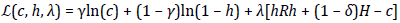 subject to c = hRH + (1 - δ) H