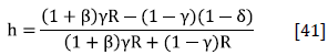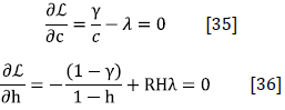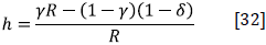 Solving for c in [30], substituting the result in [31], and solving for h, the outcome is