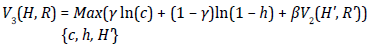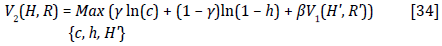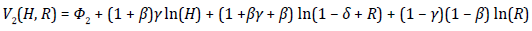 Finally, the value function V2(H, R) is computed by substituting the decision rules for c, h, and H' in Equation [34]. Simplifying the results, we obtain