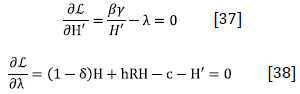 subject to H’ = hRH + (1 - δ)H - c