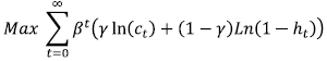 Taking FOC from the Lagrangian function ℒ(ct, ht, Ht+1 , λt) = we get