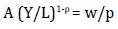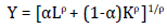 Where Y indicates output, L represents the quantity of labor, and K the quantity of capital. a is the distribution of the parameter when p is the substitution parameter. In this case, 0<α<1, -∞≤ p <1