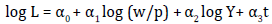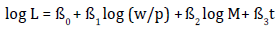 Where A denotes the time trend, which can be added allow for Hicks-Neutral technical progress to obtain the following estimating equation.