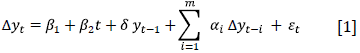 Where, εt is a pure white noise error term, t is the time or trend variable and