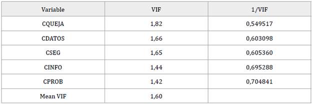 Todos los OR en cada variable incluyen el supuesto de mantener lo demás constante (ceteris paribus), es decir, que su valor sea cero y, por ende, que el usuario no tenga confianza en dicho rubro.