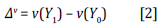 Sea T = 0 (2017) y T = 1 (2021), Y_0 la variable de puntaje en 2017 y Y_1 la variable de puntaje en 2021. Por otro lado, sea v un funcional de interés que, en nuestro caso, puede ser la media o los cuantiles de cada variable Y_t, t = 0,1. Formalmente, la variación total entre los dos periodos puede expresarse como: