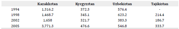 Another bulk of the literature is focused on the economic and trade relations both among the CA countries and their neighbors in terms of the dynamics of regional integration (Linn & Pidufala, 2008; Pomfret, 2000, 2005; Wang, 2014). The trade relations are also analyzed in terms of the major powers' presence, in particular, the Russian or Chinese influence in the region (Libman & Vinokurov, 2011; Pomfret, 2009; Spechler, 2002; Tang, 2000; Vinokurov et al., 2010).