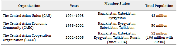 The development of regional integration processes in Central Asia started when Kazakhstan and Uzbekistan signed the Treaty on creating a common economic space on January 10, 1994, with the Kyrgyz Republic joining it a week later. Initially, the countries aimed to develop regional integration according to the model of the European Union (Pomfret, 2009). The states had quite ambitious plans for economic integration in the region. They agreed on undertaking joint efforts in economic reforms, developing a market economy, and establishing mutually beneficial economic relations (see Table 1). This included creating necessary conditions for advancing economic integration, forming a common economic space with free movement of goods, services, capital, and labor, and jointly coordinating fiscal, tax, customs, and monetary policies (Kazhenova, 2021). These initiatives marked the beginning of integration processes in Central Asia, eventually leading to the establishment of the CAU (see Table 2). Within the CAU, the Interstate Council was established at the level of Heads of State, the Council of Prime Ministers, the Council of Foreign Ministers, and the Council of Defence Ministers (Kembayev, 2006).