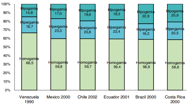 En el caso latinoamericano, el acelerado proceso de modernización económica, política y social llevado a cabo durante las últimas décadas, unido a los índices de desigualdad social más altos del planeta, hacen de la educación un criterio de jerarquización social especialmente importante. Dada esta situación, sería razonable esperar que las mayores barreras entre los grupos se encuentren a ambos lados de la jerarquía educativa. En este contexto, altos niveles de homogamia educativa contribuyen en alguna medida a que los niveles de inequidad social se perpetúen a través de generaciones, en función de la acumulación (positiva o negativa) de los recursos económicos y culturales de ambos individuos.