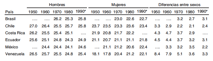 Cuadro 1. Edad media al momento de la primera unión. América Latina: países seleccionados. Décadas 1960-1990