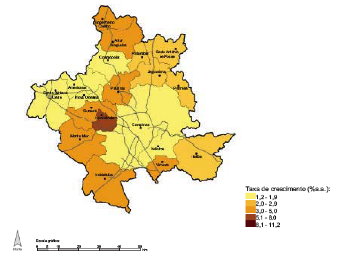 Mapa 1. Taxas de crescimento demográfico média anual Região Metropolitana de Campinas 1991/2000