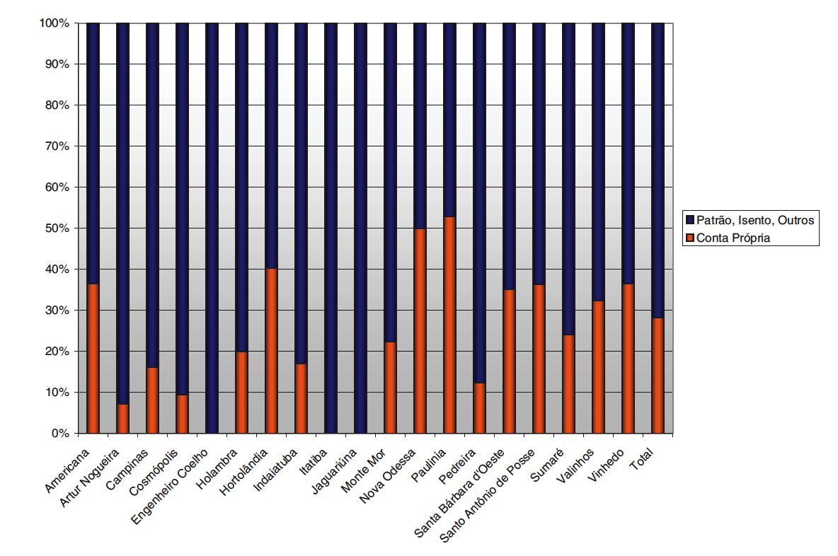 No entanto, esse baixo percentual reflete, em grande medida, o fato de que a sede regional, ou seja o município de Campinas, detém boa parte da PEA e dos empregos gerados na região. Além disso, deve-se levar em conta que essa situação sofre significativas mudanças quando se observa o comportamento do fenômeno para determinados municípios, particularmente aqueles que tendem a abrigar a população de mais baixa renda.