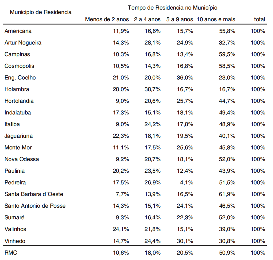 Pode-se dizer que isso seria ainda mais decisivo para pessoas de baixa qualificação já que, no outro extremo, por exemplo, aqueles trabalhadores mais qualificados muitas vezes migrariam para a região com propostas de trabalho cabendo-lhes talvez apenas a decisão de onde morar. Essa hipótese parece encontrar respaldo no fato de que nos municípios de melhor condição de vida e concentração de população de mais alta renda como Jaguariúna e Valinhos se constatam as maiores proporções de indivíduos com movimento pendular com tempo de residência reduzido.