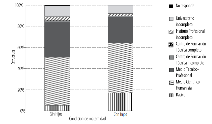 En tercer lugar está la relación que atañe al creciente segmento que ingresa a la universidad, normalmente con 18 y 19 años, y que, si bien experimenta la vulnerabilidad de los tiempos actuales -en el sentido de que esta Educación Superior no garantiza empleo de buena calidad-, en general, por edad y por su enrolamiento en ese nivel educativo, aún tienden a estar relativamente blindados contra la reproducción temprana.