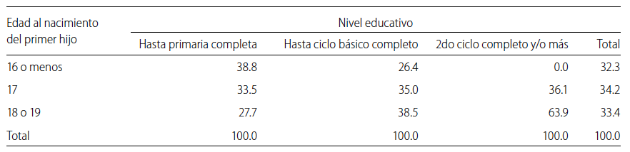 Más allá de que se desconoce si la adolescente convivió con el padre y la madre durante su niñez, los datos observados permiten inferir que el clima educativo de las adolescentes madres es bajo. El bajo nivel educativo del hogar, junto con el comienzo precoz de la maternidad, puede incidir en el temprano abandono del sistema escolar por parte de las adolescentes. Esto, a su vez, puede tener consecuencias sobre los niveles de fecundidad posteriores. La literatura demuestra ampliamente la relación positiva entre un inicio temprano de la etapa reproductiva y una descendencia final elevada. El abandono precoz del sistema escolar (en el cual incide el clima educativo del hogar) puede ser una de las explicaciones de este fenómeno, ya que es sabido que las mujeres con menor capital educativo tienen, en general, una descendencia más elevada que aquellas que logran permanecer más tiempo en el sistema escolar y obtener niveles de educación más elevados (Rodríguez, 2005; Stern, 2004).