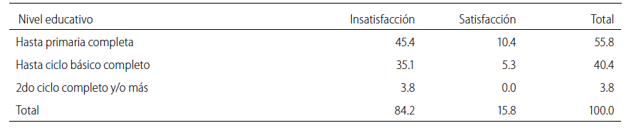 El bajo nivel educativo no parece incidir en una mayor satisfacción con el calendario de la fecundidad: entre las adolescentes insatisfechas casi la mitad (45.4%) tiene hasta seis años de educación y algo más de una tercera parte (35.1%) tiene tres años de secundaria