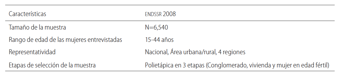 Cuadro 1. Características de la encuesta ENDSSR 2008