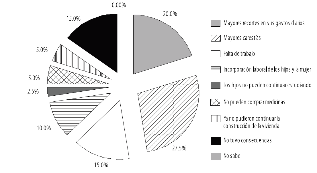 Entre los hogares que dejaron de recibir o que declararon una disminución en la cantidad de la remesa, la desaceleración ha tenido consecuencias económicas y sociales relacionadas con la insuficiencia de recursos para sobrevivir y solventar gastos de educación y salud. Asimismo, se detectan problemas de trabajo que, por un lado, se reflejan en la falta de empleo, y, por otro, en la participación laboral de la mujer y otros integrantes del hogar (Gráfico 7).