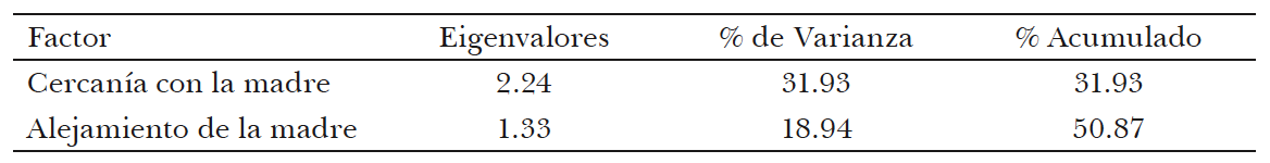 Cuadro 4. México, 2005. Resumen de los resultados del análisis factorial de relación con la madre. Matriz con rotación varimax y normalización káiser