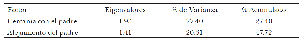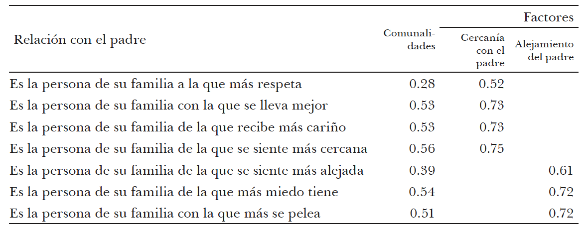 Cuadro 7. México, 2005. Resumen de los resultados del análisis factorial entre las variables de relación con el padre