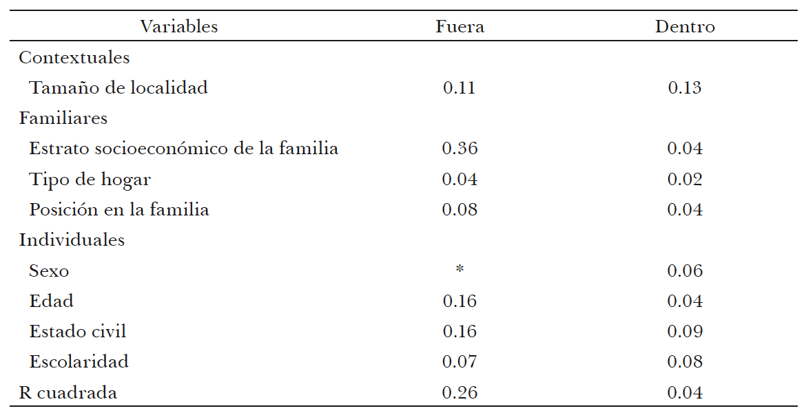 Cuadro 11. México, 2005. Índice de convivencia fuera y dentro del hogar (Coeficientes beta ajustados por factores)