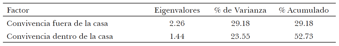 Cuadro 2. México, 2005. Resumen de los resultados del análisis factorial entre las variables de convivencia