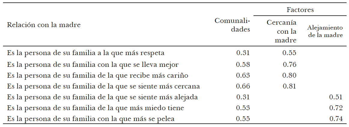 Cuadro 5. México, 2005. Resumen de los resultados del análisis factorial entre las variables de relación con la madre