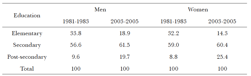 Table 2. Uruguay, 1981-1983 and 2003-2005. Young People (21-32) by Education Level (%)