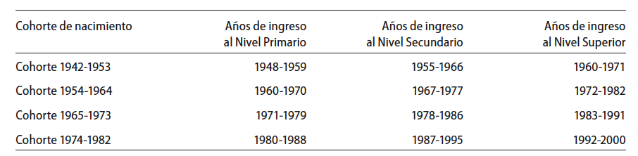 Cuadro 1. Cohortes de nacimiento construidas para el análisis de los efectos de la segmentación pública-privada sobre las oportunidades de progresión educativa. Argentina. Año 2007