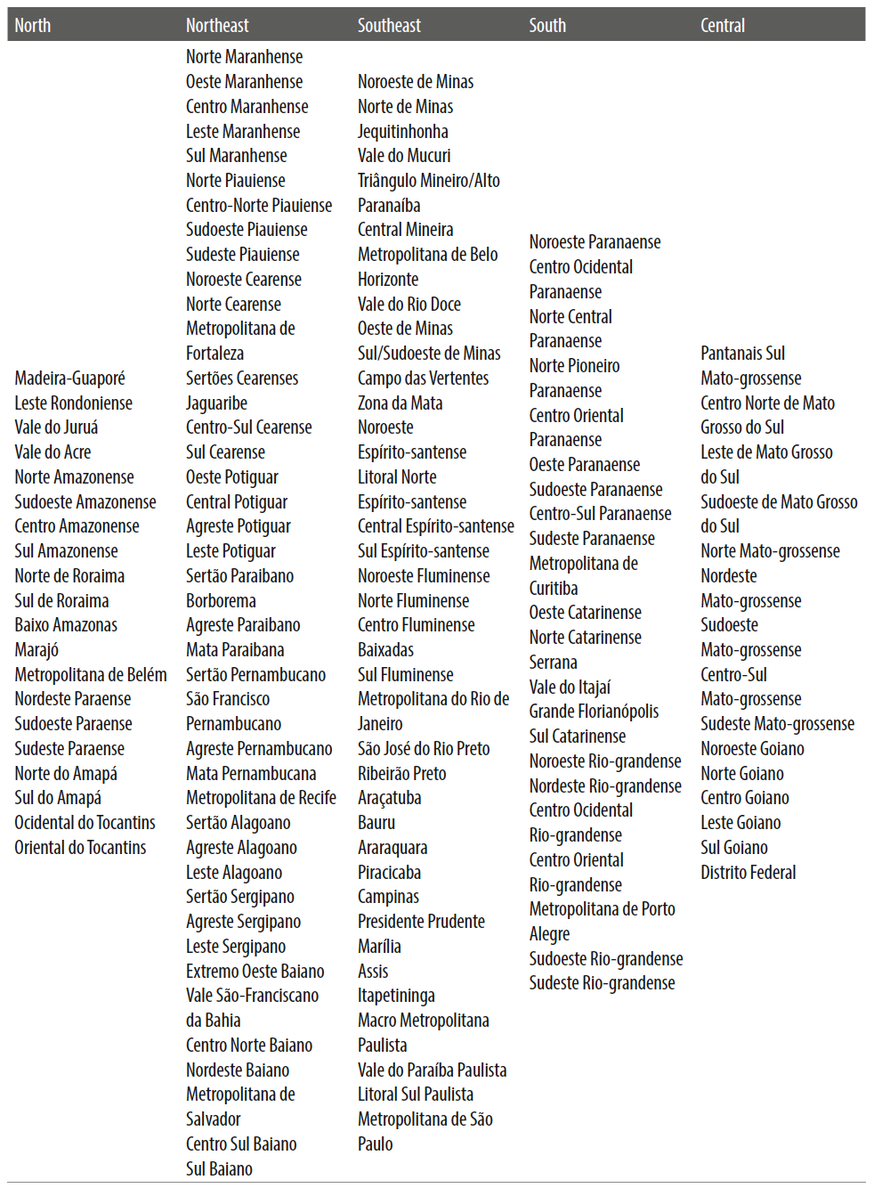 Given these reasons, this article analyzed local marriage markets, considering mesoregions as its definition. These are socially and economically homogeneous geographic areas that are constrained by a state’s boundaries. It is difficult to establish an agreement between researchers of what constitutes a local marriage market. Therefore. I opted for a large area that would include the most important places where people find spouses and receive influence about whom to marry. These places include schools, residential neighborhoods, and places of work.